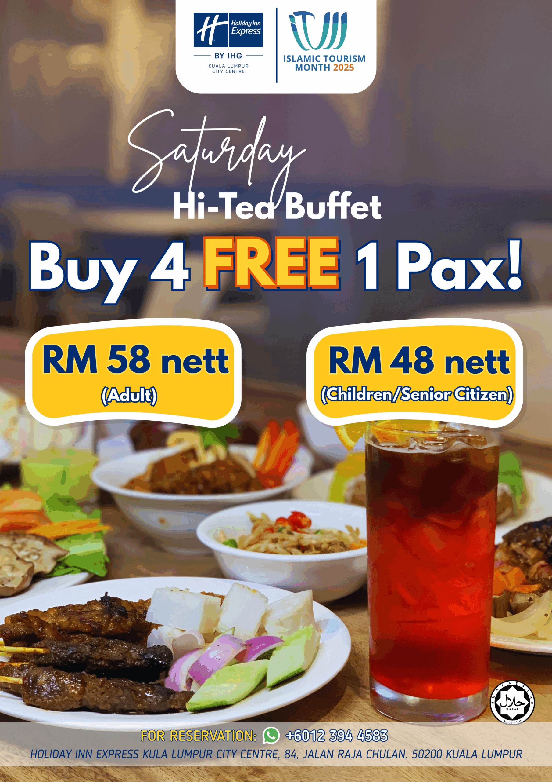 • 📣 Buy 4, Get 1 Free on Saturday 📣 Hi-Tea Buffet—Islamic Tourism Month special.