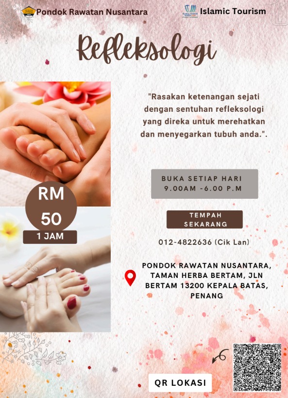 💆 Nikmati rawatan Refleksologi yang membantu melancarkan peredaran darah, melegakan stres, dan menyegarkan tubuh anda.