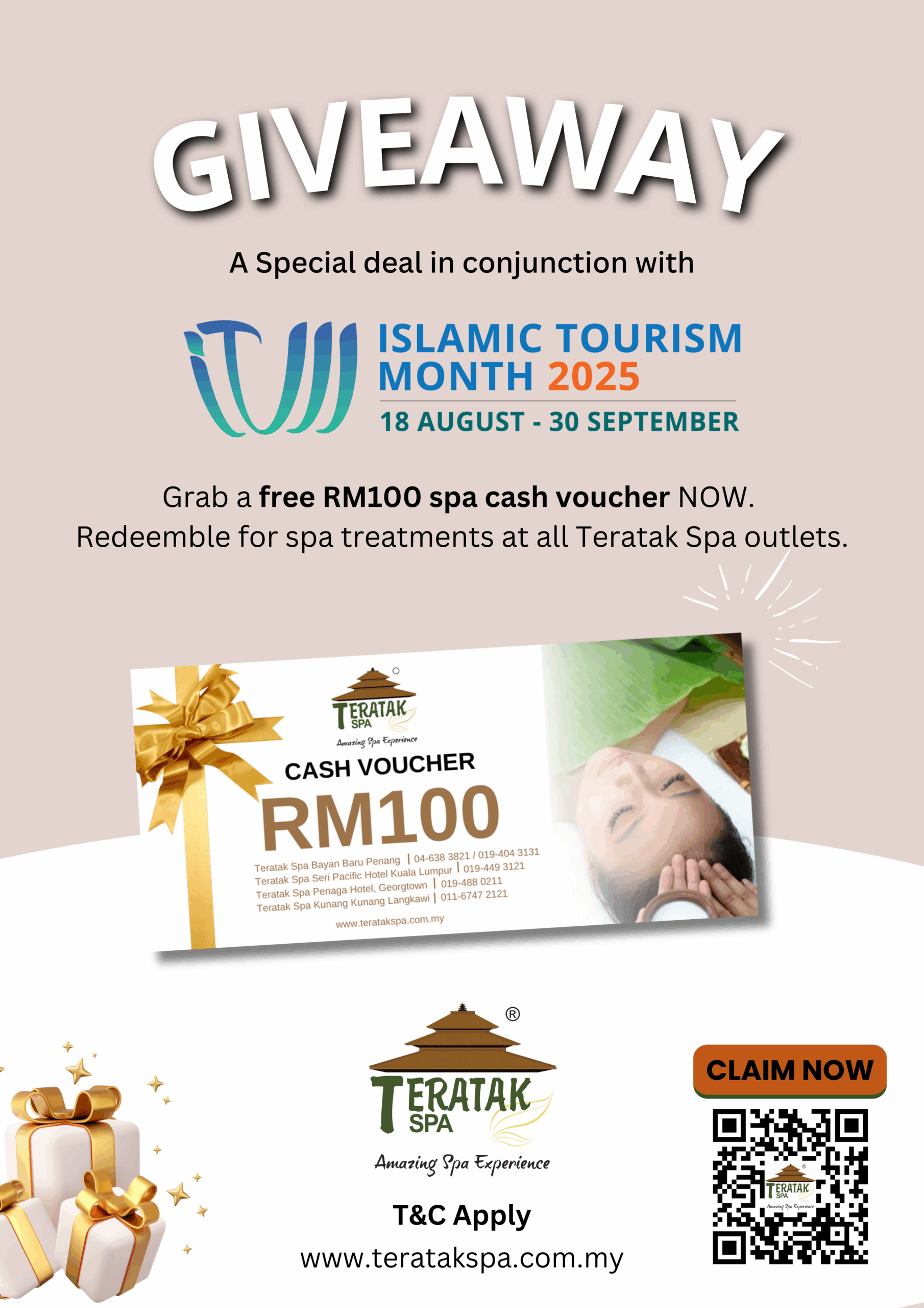 - RM100 off Spa Cash Voucher for all treatment RM250 above. 💸